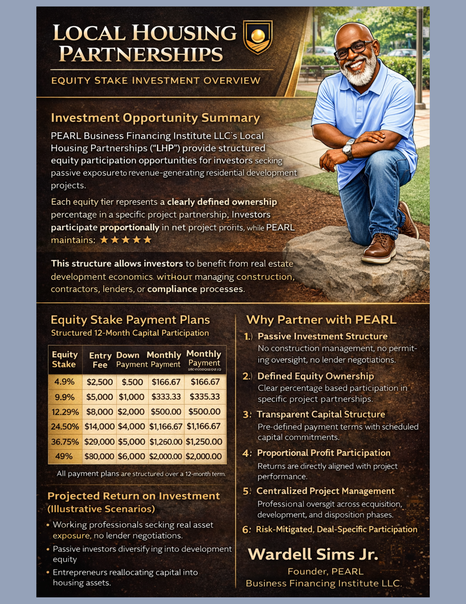 Our Business Financing Institute Local Housing Partnership is committed to empowering professionals like you. We provide a gateway into the realm of real estate investing that requires neither substantial financial resources, extensive prior expertise, nor a complete overhaul of your work-life balance.