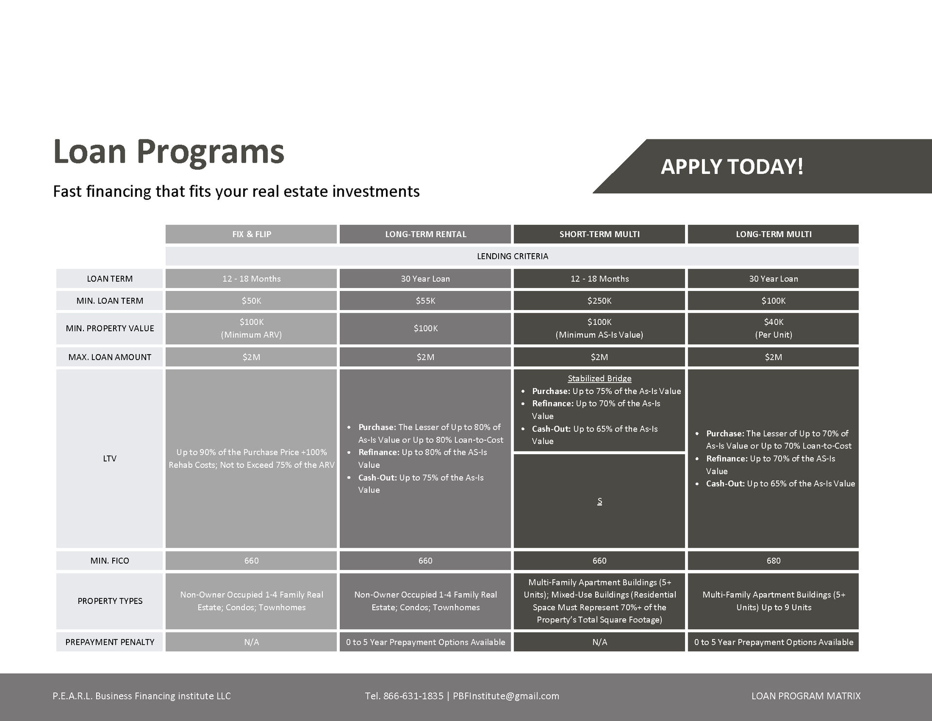 Complete the form to get a copy of our loan programs!