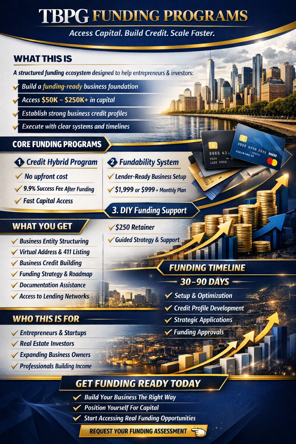 Assisting entrepreneurs in securing $50K–$250K+ in funding through compliant and bankable business structures.