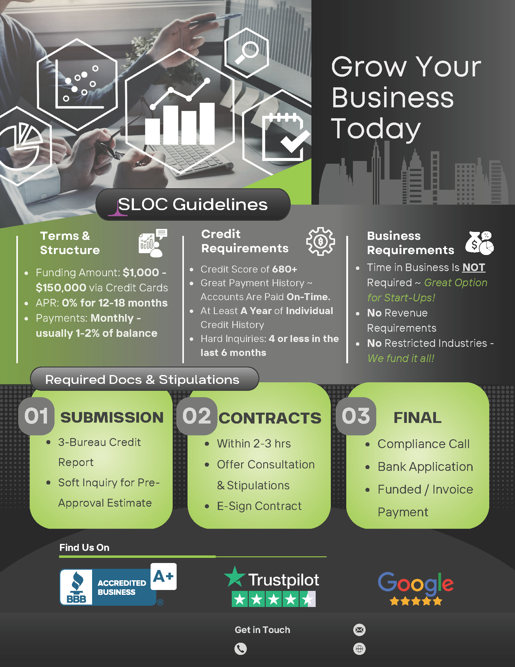 Syndicated Lines of Credit (SLOCs): SLOCs provide businesses with access to flexible credit lines through specially designed credit cards tailored to meet the unique needs of companies. This financial tool allows businesses to make purchases, manage cash flow, and handle unexpected expenses without the burden of traditional lending processes.