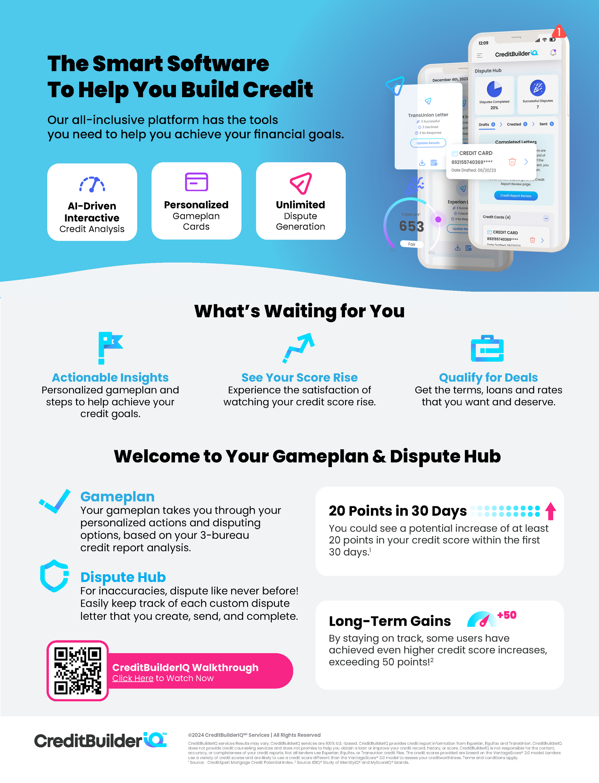 Credit Builder IQ: This is a robust, all-inclusive platform designed to empower consumers with the essential tools and resources needed to achieve their financial objectives. It offers personalized credit strategies, educational resources on credit management, and progress tracking features that enable users to monitor their improvement over time.