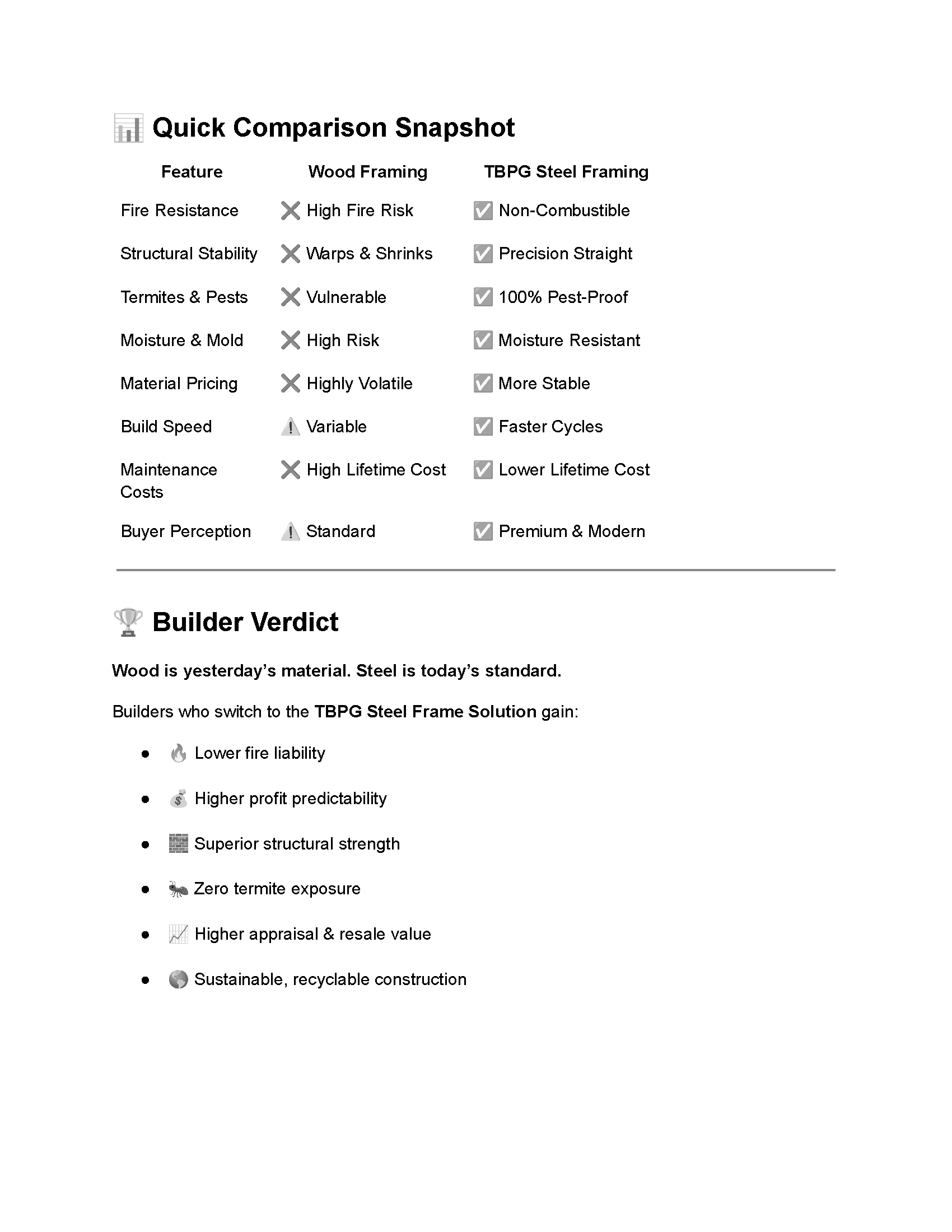 When performance, safety, speed, and profitability matter, switching from wood framing to TBPG Steel Frame Solution becomes an easy decision.